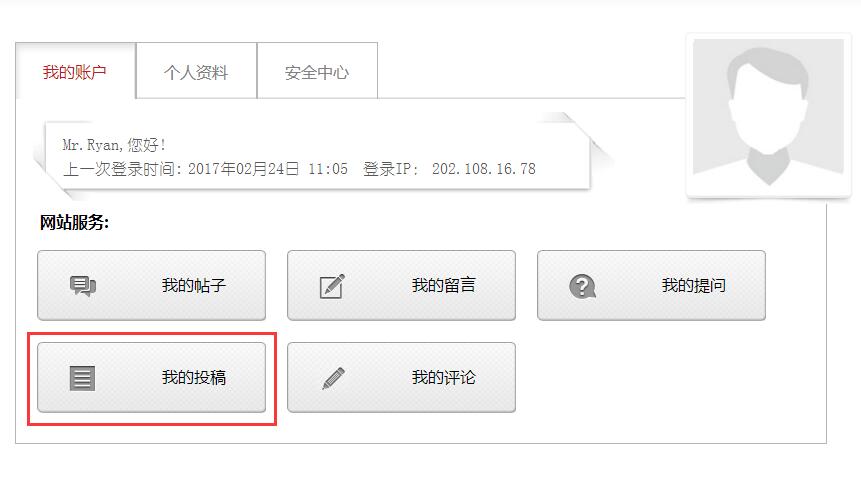 登录状态下,点击网站首页顶部“登录”入口,进入用户中心后,点击“我的投稿”(如图9)就可以看到您在本网已发布的所有文章。